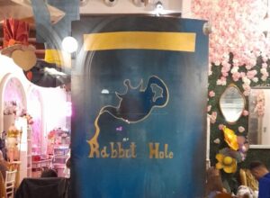 Ultimo ma non per importanza, l’Hole Rabbit cafè. E’ possibile che vi tocchi fare una fila di mezz’ora per entrarvi, ma soprattutto se siete amanti del tè, ne varrà la pena. Il locale p ispirato ad Alice nel paese delle meraviglie, le cameriere sono vestite con un abito azzurro che ricorda proprio il personaggio della Disney. Scendendo le scale vedrete sulle pareti delle enormi pagine con i passaggi del libro di alice. Scendendo al piano di sotto, l”ambientazione è ispirata alla Regina di cuori con il rosso e il nero. Le sedie sono a forma di fiori e picche. Il menù offre una varietà infinita di tè. neri, verdi e chi più ne ha più ne metta, persino alcuni alcolici. Questo vi viene servito con delle bellissime tazzine e la teiera. Noi abbiamo preso il “milky”, servito con dei piccoli zuccherini che al versare il liquido caldo, assumerà il colore azzurro. Ci è stato servito con dei biscotti a forma di cuore, stelle e fiori. Impossibile non adorare.