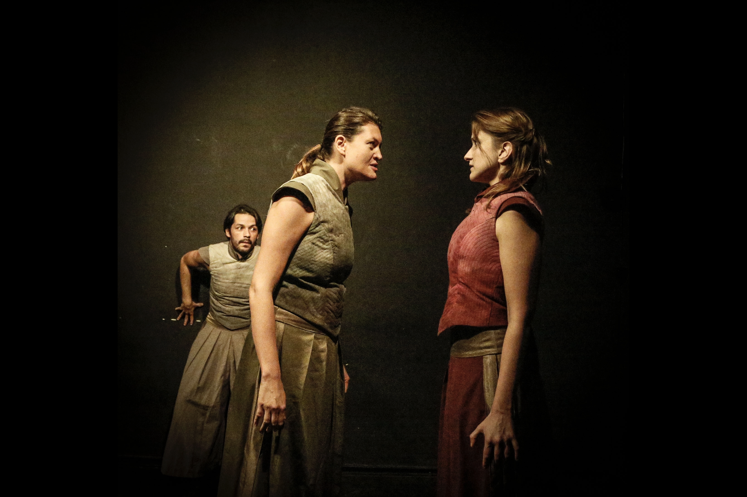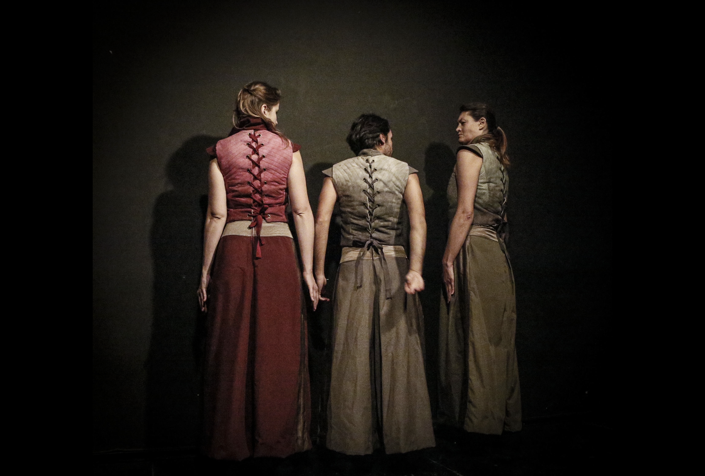 Non c’è un cast numeroso: ci sono solo tre attori, due donne e un uomo – Solene Bresciani, Vincenzo Coppola e un’incredibile Sara Missaglia – che si scambiano voci, espressioni e ruoli senza badare al genere o all’età, che portano abiti semplici e che hanno bisogno di indossare solo le loro espressioni. Sono tutti e nessuno, contemporaneamente sul palco personaggi e attori, maschere che recitano e si fanno vere, persone che giocano al gioco del “far finta che”. La loro performance – nuda, essenziale – rende tangibile l’inespresso, l’impossibile, l’indicibile, che in questo scambio continuo di voci e mimiche rendono reale la finzione, portando negli occhi degli spettatori la follia di Amleto e di Ofelia.