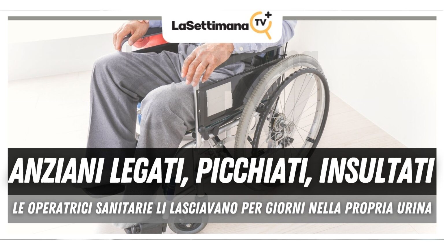 Anziani legati sulle sedia a rotelle dalle operatrici sanitarie