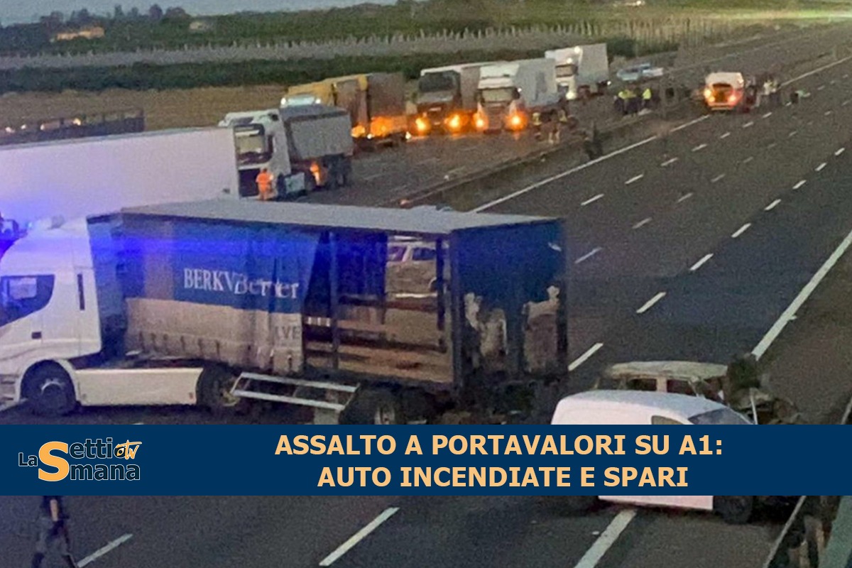 Assalto a portavalori su A1: auto incendiate e spari.