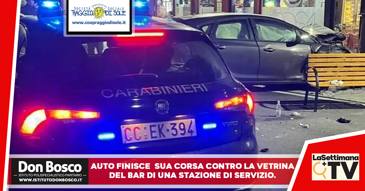 Dopo aver urtato il guard-rail, uno dei mezzi ha invaso la corsia opposta finendo la sua corsa contro la vetrina del bar di una stazione di servizio.