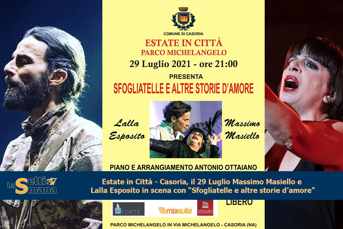 Il 29 Luglio alle ore 21:00, per il festival “Estate in Città” al Parco Michelangelo di Casoria (NA), andrà in scena lo spettacolo “Sfogliatelle e altre storie d’amore” con protagonisti Massimo Masiello e Lalla Esposito e con Antonio Ottaiano al piano e arrangiamento.