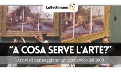 Due ventenni di Brighton si sono recati alla National Gallery di Londra per incollarsi letteralmente alla cornice di un quadro di Constable,“Il carro di fieno”, 1821,...