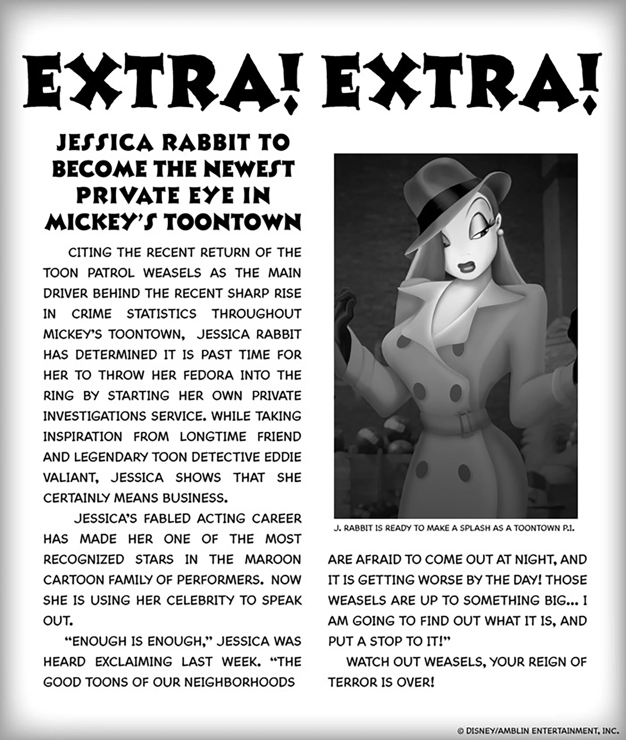 Eppure, il cambiamento che maggiormente ha infastiditio il mondo di internet, è quello di Jessica Rabbit: la donna sexy, una femme fatale (raffigurata con i lineamenti di Rita Hayworth e la voce di Kathleen Turner), moglie di Roger Rabbit. I giornali e molti utenti si sono indignati, criticando questa “mossa” della Disney: “il politically correct ha rovinato il mondo, non si possono cancellare personaggi iconici come quello di Jessica Rabbit, createvi dei personaggi nuovi, ma non rovinateci quelli vecchi.”