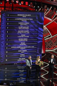 Dopo l’esibizione delle prime 12 canzoni in gara, la classifica della prima serata vede in vetta Mahmood e Blanco, mentre il fanalino di coda è Ana Mena.