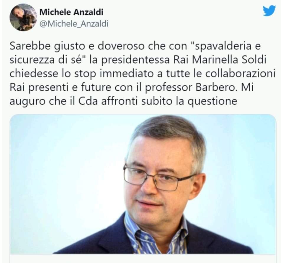 In breve la palla è passata anche alla politica: il deputato di Italia Viva Michele Anzaldi, membro della Commissione parlamentare per l’indirizzo generale e la vigilanza dei servizi radiotelevisivi, ha chiesto l’allontanamento di Barbero dalla Rai: “Sarebbe giusto e doveroso che con ‘spavalderia e sicurezza di sé’ la presidentessa Rai Marinella Soldi chiedesse lo stop immediato a tutte le collaborazioni Rai presenti e future con il professor Barbero. Mi auguro che il Cda affronti subito la questione”.