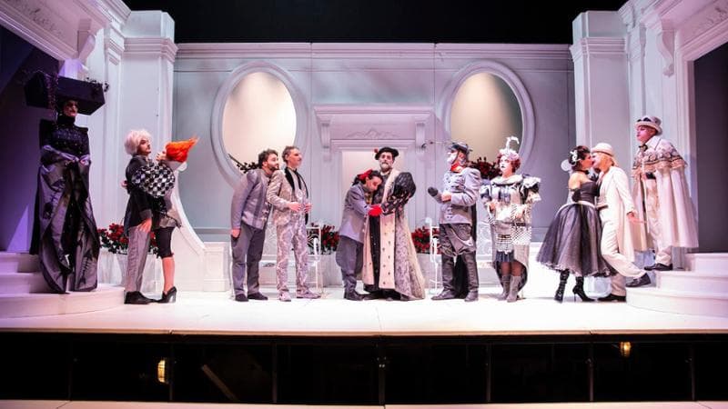 Impossibile non plaudere anche alla scenografia – soprattutto quella del secondo atto – che gioca con i contrasti e con le luci, per non parlare dei costumi: folli, luccicanti e sontuosi e che, forse più di ogni altra cosa, riescono a ben sottolineare quanto la nobiltà, la differenza tra ricchi e poveri, uomini rispettabili e miserabili, sia solo una pantomima, una farsa, una bugia.