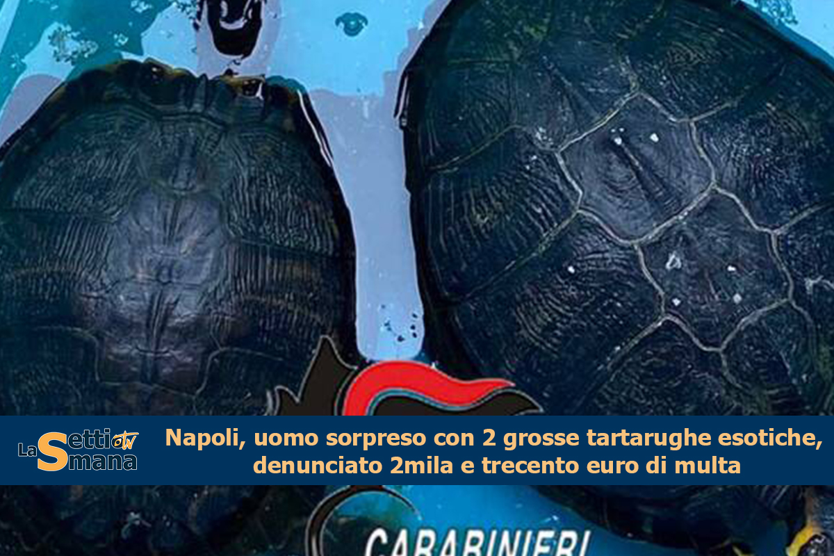 I Carabinieri Motociclisti del Nucleo Radiomobile di Napoli stanno percorrendo via Pignasecca e notano un uomo con un grosso recipiente di plastica.La cosa incuriosisce i militari che si avvicinano per controllare. L’uomo – un 50enne napoletano – sta trasportando 2 grosse tartarughe. I carabinieri del Nucleo Cites di Napoli – allertati dal 112 su richiesta dei motociclisti – constatano che si tratta di 2 esemplari di trachemys scripta, le tartarughe a guance gialle.