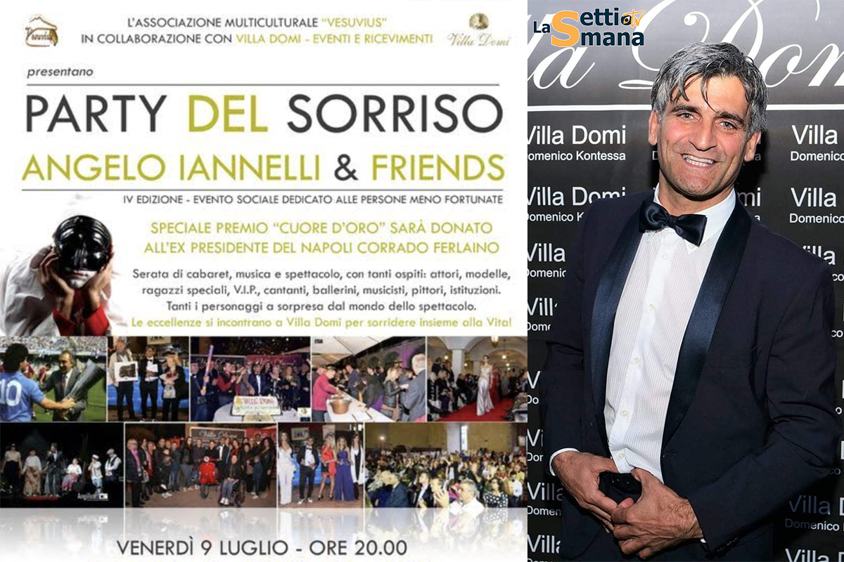 In tantissimi hanno confermato la presenza al king del sorriso Angelo Iannelli, eroe post moderno , per questo evento di forte aggregazione sociale, che negli anni è spopolato sui social per aver dato voce ai ragazzi invisibili. Hanno confermato la loro presenza al big evento tante eccellenze : Lucia Cassini,Angelo Di Gennaro ,Gigi Savoia , Cosimo Alberti, Giovanni Caso , Davide Marotta, Antoine,Antonio Ciccone , Giuseppe Cascella, Enzo Guariglia, Clemente De Stefano, Enzo Nicolò , Massimiliano Cimino, Gennaro De Crescenzo, Diego Moreno, Ciro Marra, Peppino di Bernardo, Roberto Minini sosia di Bono Vox U2, Teresa Moccia , Maria Rosaria Cenni e tanti altri . alla consolle DJ Sasà Giglio, non mancheranno esibizioni a sorprese al “Friends” Angelo Iannelli. Finale con la tammurriata del maestro Romeo Barbaro . La serata sarà glorificata dai” Percorsi D’arte in Tour” in mostra gli artisti: , Marta Krevsun, Bruno Ciniglia,Luigi Cali, Claudio Torino , Nadia Basso, Lorenzo Di Marino, Francesco Liuzzi, Giovanni Cardiero e Maurizio Fontanella. Durante la serata sarà possibile degustare alcune eccellenze gastronomiche campane :mozzarella, pizza, frittura, bruschette, vino, pane, biscotti, liquore, pasta trafilo di bronzo , dolci,graffette , cioccolata e confetti .Tutto ciò grazie alle aziende social che hanno sostenuto questo importante progetto di solidarietà: Caseificio San Vito , Luciano Sorbillo ,Gemme del Vesuvio ,LaTorrente,Caffe’ D’angelo , azienda agricola Turboli Luigi ‘ O sole ‘e Napule, Ferraro Vini , L’abbondanza del Pane ,Sapori di Napoli,Terre Pompeiane,CioccolataTodisco , Ciro Poppella ,Cuore di Sfogliatelle, Pasticcieria Dolce è Caffè , Rastriello confetti ,Accendi un sogno fuochi d’artificio. il Make- Up sarà diversi hair stilist ,tra cui Claudio De Martino .La manifestazione sarà ripresa dai più importanti mass media regionali e nazionali. Per la sicurezza saranno presente Union SecurtyS.p.a e Base Puma.