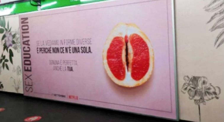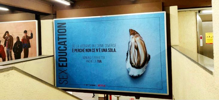 I cartelloni pubblicitari della nuova serie Netflix “Sex Education” sembrerebbero scandalizzare l’Italia. Nelle metro di Milano sono ben visibili i poster che giocano sui doppi sensi con ostriche, banane e cactus per promuovere l’uscita della terza stagione, accompagnati dallo slogan «se la vediamo in forme diverse è perché non ce n’è una sola. Ognuna è perfetta, anche la tua», un messaggio ispirato alla body positivity, tema centrale della serie che vede protagonista uno studente insicuro, Otis, che si improvvisa sessuologo per i compagni e per tutta la scuola.