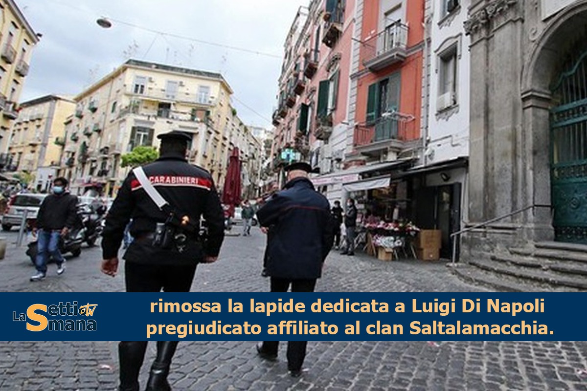 Questa mattina a Napoli presso il Corso Vittorio Emanuele, l’amministrazione comunale, assistita dalle Forze dell’ordine, ha provveduto alla rimozione di una lapide in marmo, posta su un muro adiacente un marciapiede pubblico, dedicata a Luigi di Napoli pregiudicato affiliato al clan Saltalamacchia.