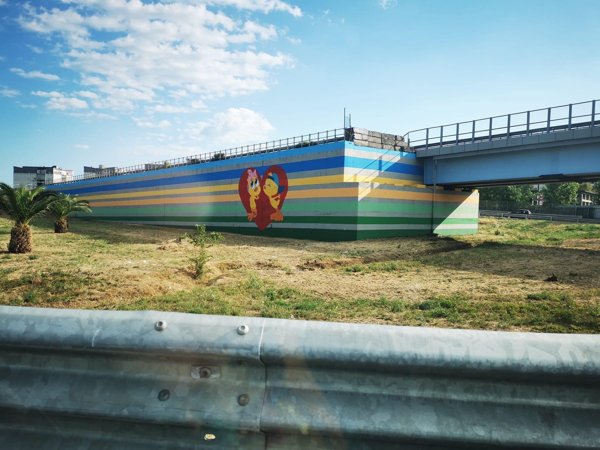 In molti hanno sorriso, rallegrati dai colori vivaci del murales che hanno coperto il grigiore squallido del cemento; altrettante persone, però, hanno trovato l’iniziativa fuori luogo e il disegno inadatto.