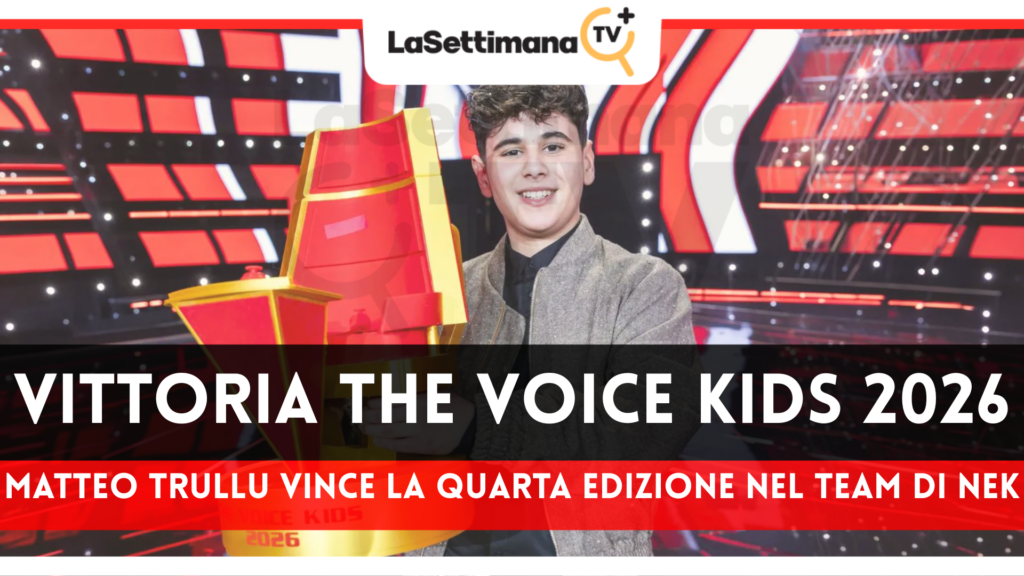 Matteo Trullu trionfa a The Voice Kids 2026 È Matteo Trullu il vincitore della quarta edizione di The Voice Kids, il talent show di Rai1 dedicato ai giovani talenti dai 7 ai 14 anni. La finale, andata in onda il 14 febbraio 2026, ha regalato emozioni, colpi di scena e un risultato di ascolti straordinario. … Leggi tutto The Voice Kids 2026: vince Matteo Trullu
