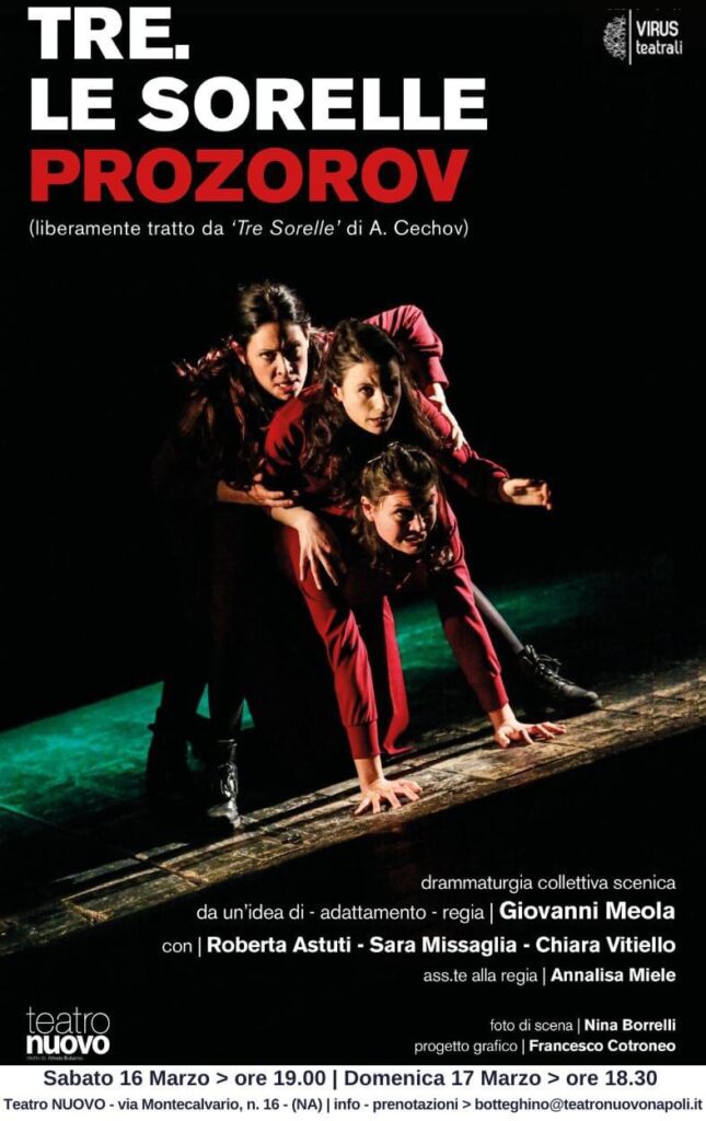 “Tre. Le sorelle Prozorov”, tratto da “Tre sorelle” di Anton Cechov, è in programma sabato 16 e domenica 17 marzo al Teatro Nuovo di Napoli. Lo spettacolo ha recentemente vinto il pregio alla “Miglior Regia” al Do It Festival.
