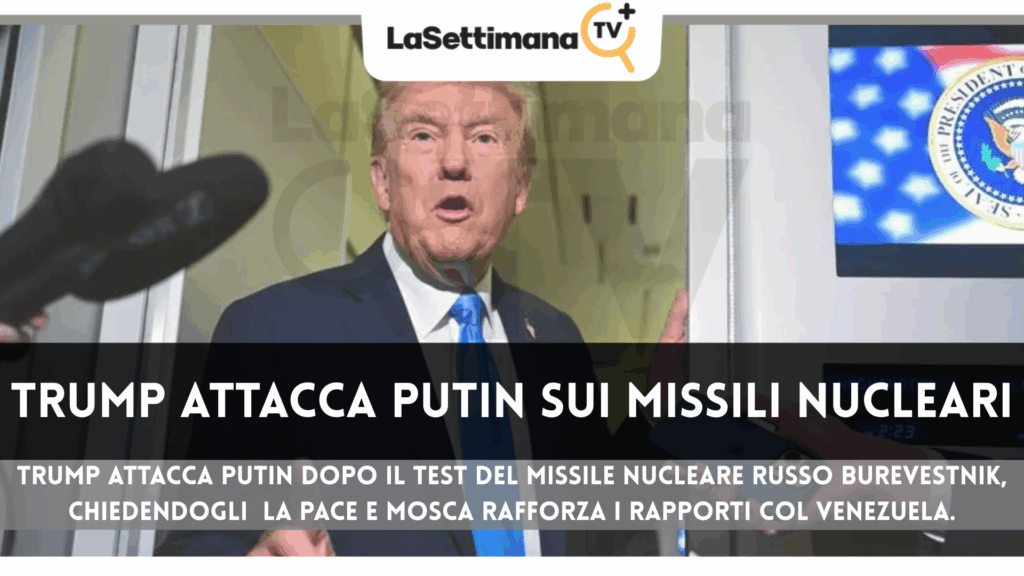 Trump attacca Putin Il presidente americano ha dichiarato ai reporter sull’Air Force One: “Non credo sia appropriato da parte di Putin fare certe dichiarazioni. Dovrebbe far finire la guerra, invece di testare missili.”Ha aggiunto: “Sanno che abbiamo un sottomarino nucleare, il più grande del mondo, al largo delle loro coste. Non serve che il missile … Leggi tutto Trump attacca Putin sui missili nucleari